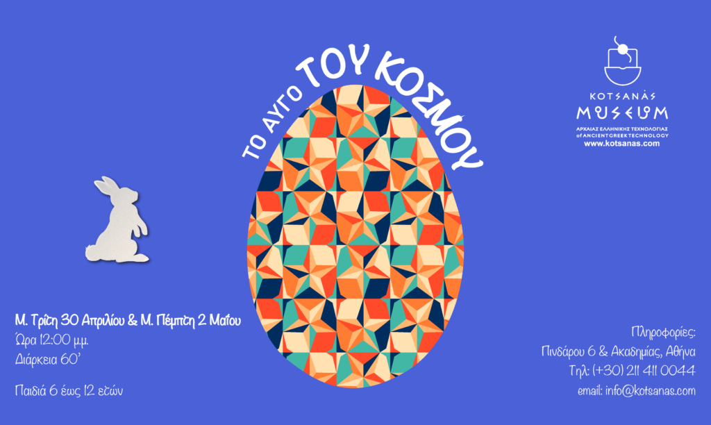 Ένα ταξίδι γνωριμίας με την αρχαία ελληνική τεχνολογία έρχεται να ξεκλειδώσει τα μυστικά της φύσης και μας καλεί σε μία περιπέτεια γνώσης. Ψάξτε και βρείτε κι εσείς μαζί μας το κοσμικό αβγό και ελάτε να φτάσουμε ως την άκρη του διαστήματος. Τι μπορεί να βρίσκεται εκεί; Ο Πλάτωνας ενισχύει τη δημιουργική μας φαντασία και αναμένει την απόφασή μας. Εσείς, πώς φαντάζεστε το γενεσιουργό «αβγό του σύμπαντος»;
