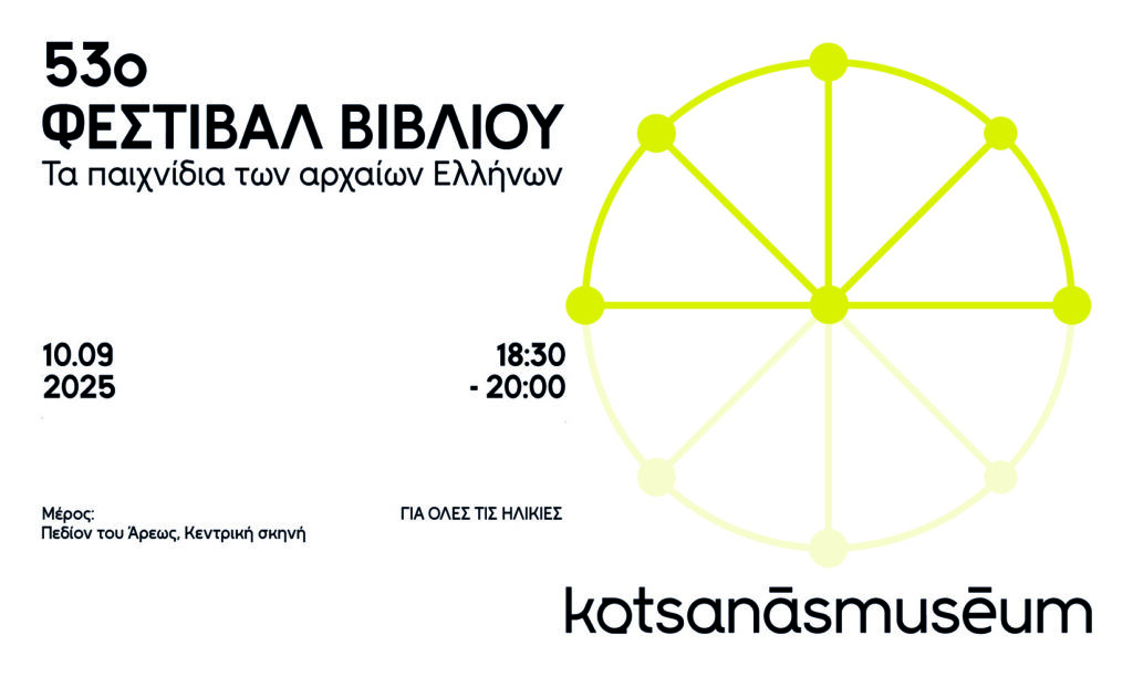 Το Μουσείο Κοτσανά Αρχαίας Ελληνικής Τεχνολογίας ανανεώνει τη συμμετοχή του στο 53ο Φεστιβάλ Βιβλίου, που πραγματοποιείται τον μήνα Σεπτέμβριο στο Πεδίον του Άρεως.