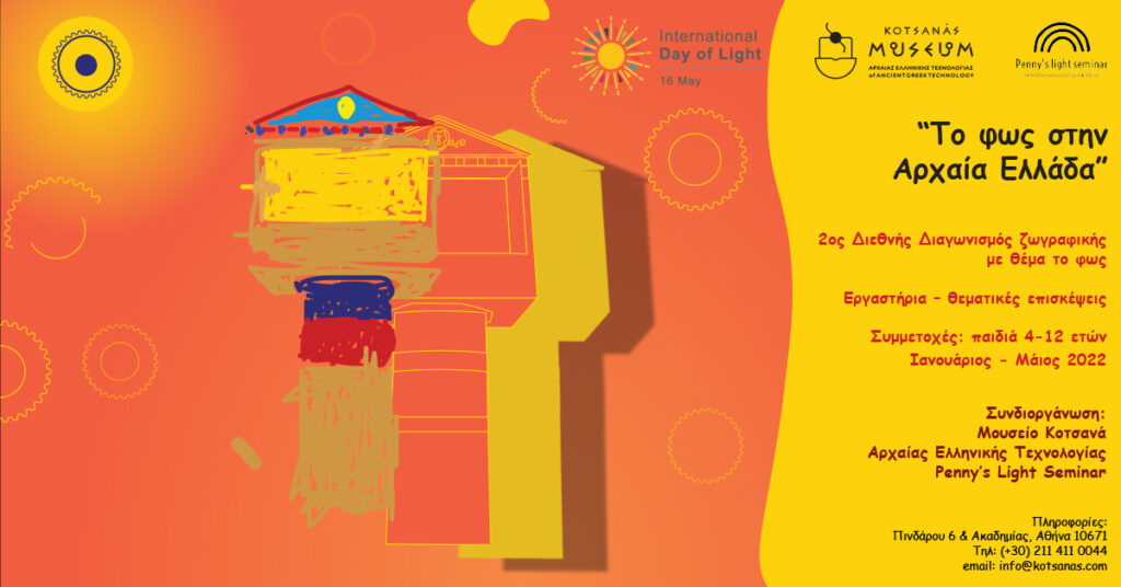 Tο Μουσείο Κοτσανά Αρχαίας Ελληνικής Τεχνολογίας σε συνεργασία με το “Penny’s Light Seminar” της Δρ. Πέννυς Χατζηευστρατίου Μιχελινάκη, αποτελούν την επίσημη συμμετοχή στο πρόγραμμα εκδηλώσεων της UNESCO για το 2022 και διοργανώνουν τον 2ο Διεθνή Διαγωνισμό με θέμα το φως. Ο Διαγωνισμός αποσκοπεί στην ενημέρωση και ευαισθητοποίηση των παιδιών για τη σημασία και το ρόλο του φωτός στη ζωή μας.