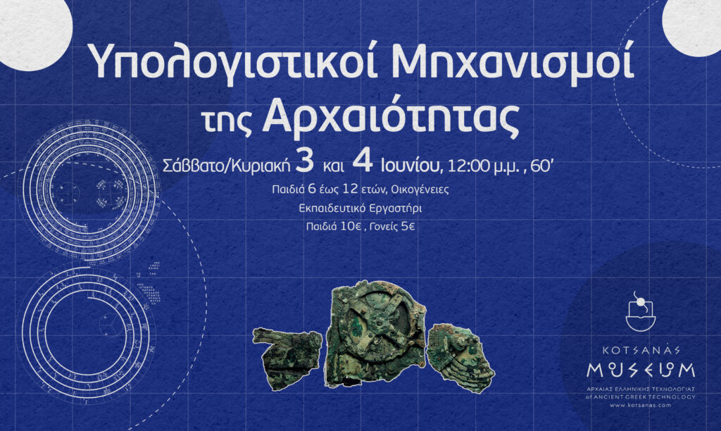 Ανακαλύψτε τον ελληνικό (ακροφωνικό) άβακα, µια ειδική πινακίδα που επιτρέπει την ταχύτατη τοποθέτηση αριθµών οποιουδήποτε πλήθους και µεγέθους µε το «Ηρωδιανό» σύστηµα αρίθµησης και την ταχύτατη έκδοση του αποτελέσματος πρόσθεσης, αφαίρεσης, πολλαπλασιασµού και διαίρεσης µεταξύ τους. Εξασκηθείτε, διαγωνιστείτε και κερδίστε ένα ξεχωριστό δώρο από το πωλητήριο του Μουσείου. Περιστρέψτε το κοµβίο ενός µηχανισµού των Αντικυθήρων σε γιγάντια κλίµακα και ξεκλειδώστε µόνοι σας τα «µυστικά» του. Πηγαίνετε στο παρόν, το παρελθόν ή το µέλλον και εντοπίστε τη θέση του ήλιου στον ζωδιακό κύκλο, τη θέση και τη φάση της σελήνης, τον µήνα στο σεληνιακό ηµερολόγιο, την ηµέρα και την ώρα ηλιακών και σεληνιακών εκλείψεων, τις ηµεροµηνίες τέλεσης των αρχαίων αθλητικών αγώνων, κ.ά. Κατασκευάστε µόνοι σας ένα λειτουργικό τµήµα του Μηχανισµού των Αντικυθήρων από µέταλλο και πλεξιγκλάς!