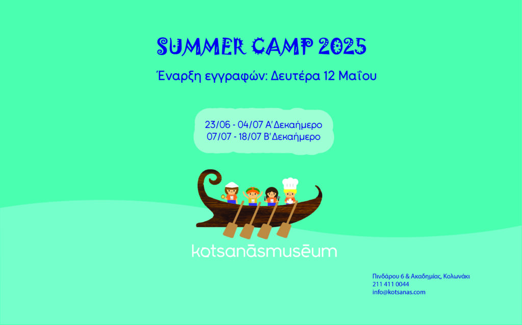 - Το Summer Camp πραγματοποιείται από το «Μουσείο Κοτσανά Αρχαίας Ελληνικής Τεχνολογίας», Πινδάρου 6 & Ακαδημίας, Κολωνάκι, 10671, Αθήνα.